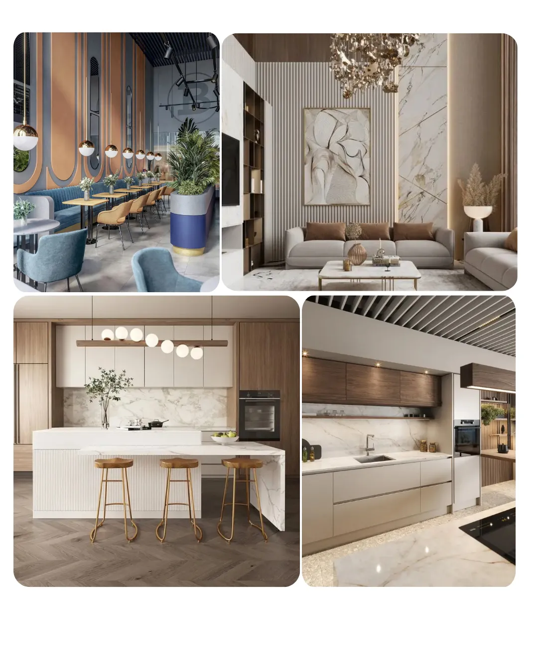 Satu payung layanan terintegrasi: Desain Arsitektur & Interior, General Contractor, Interior Contractor, hingga CNC Cutting dari ide sampai siap dihuni.